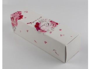 飄散著的粉色花瓣,制造了一種浪漫、溫馨的感覺,情侶間共享燭光晚餐不防也帶上這樣一個酒盒包裝,渲染一下氛圍。駿業(yè)包裝設(shè)計印刷的紅酒盒一如既往的平整干凈,厚實、美觀,精湛工藝可見一斑。酒盒開口處那固定酒瓶的圓孔設(shè)計,別出心裁,卻為攜帶的安全性帶來一份保險。