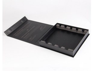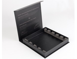 禮品包裝盒選用了書本式的翻蓋盒型,內(nèi)置鋸齒形的EVA內(nèi)托,在保護了產(chǎn)品的同時,又不失其高檔氣息。