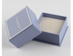 此款首飾盒包裝采用157g銅版紙裱1000g灰板,單色印刷,過啞膠,內(nèi)盒置入雙層海綿內(nèi)托。首飾天地蓋盒設(shè)計(jì)采用了淺藏藍(lán)色作為整體色,搭配白色的logo,給人 優(yōu)雅又活潑 的視覺感。首飾紙盒置入成型的米白色海綿內(nèi)托,與產(chǎn)品完全吻合,起到固定和美華的作用。