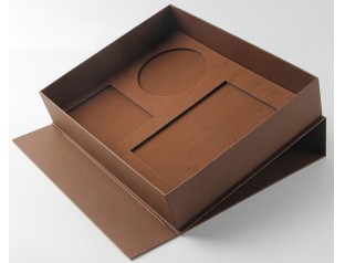 這個襯衫包裝盒定制使用1100克灰板紙為內(nèi)紙,裱紙為157克雙銅紙,覆啞膜;因為是用來裝襯衫的包裝盒,所以尺寸比較大,而又因為襯衫是端莊、大氣的商品,所以包裝盒的設(shè)計也不需要太過浮夸,簡簡單單就好;雙銅紙?zhí)烊坏募±斫o人環(huán)保又不失單調(diào)的感覺,無需過多的雕琢鑲嵌就充滿貴族的氣質(zhì),棕色的色調(diào)又為盒子增添一份高貴感。